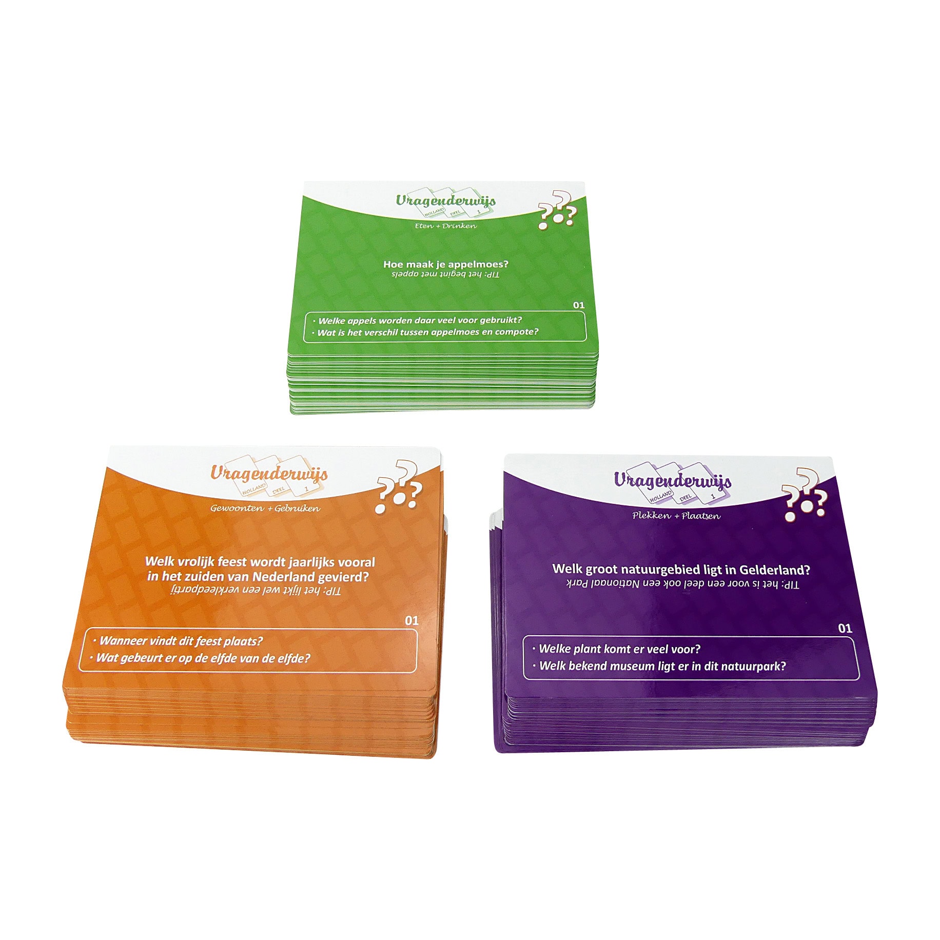 Vragenderwijs Holland Volume 1 ist eine neue Schachtel mit Spielkarten aus der Serie Vragenderwijs. Ein sehr beliebtes Aktivierungs- und Gedächtnisspiel. Bei Vragenderwijs Holland geht es um typisch holländische Themen mit Fragen zu Essen & Trink…