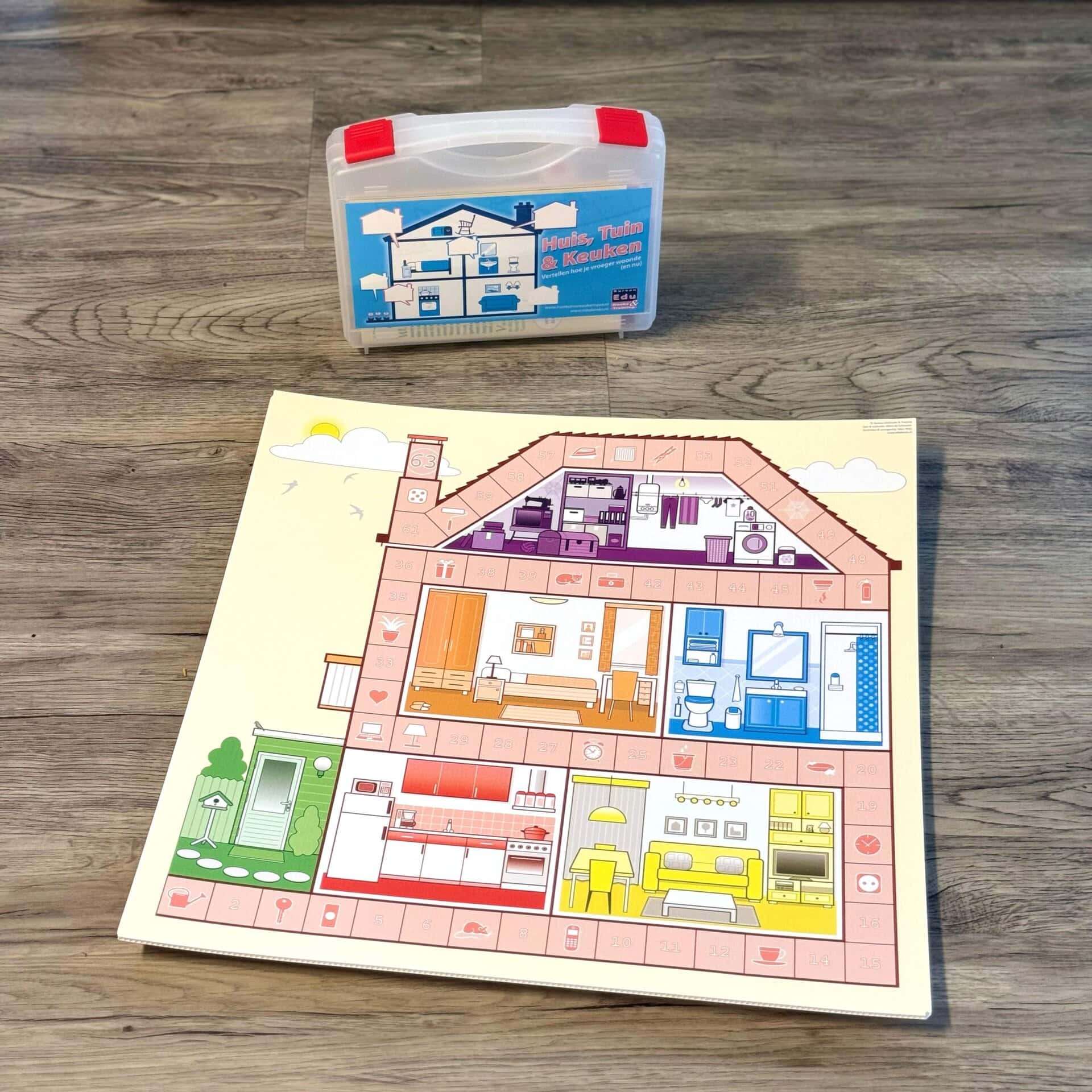 This game was completely revamped in 2017. The number of game cards has doubled and they have become bigger and more beautiful. The case contains 144 game cards with questions divided into 6 themes: House garden and barn, Kitchen, Living room, Bathroom, Bedroom, Basement hallways and attic. Each theme has its own color, allowing the game to be played with the color die. Two short manuals separately provide information about: the game and the various methods of working, playing with memory problems.