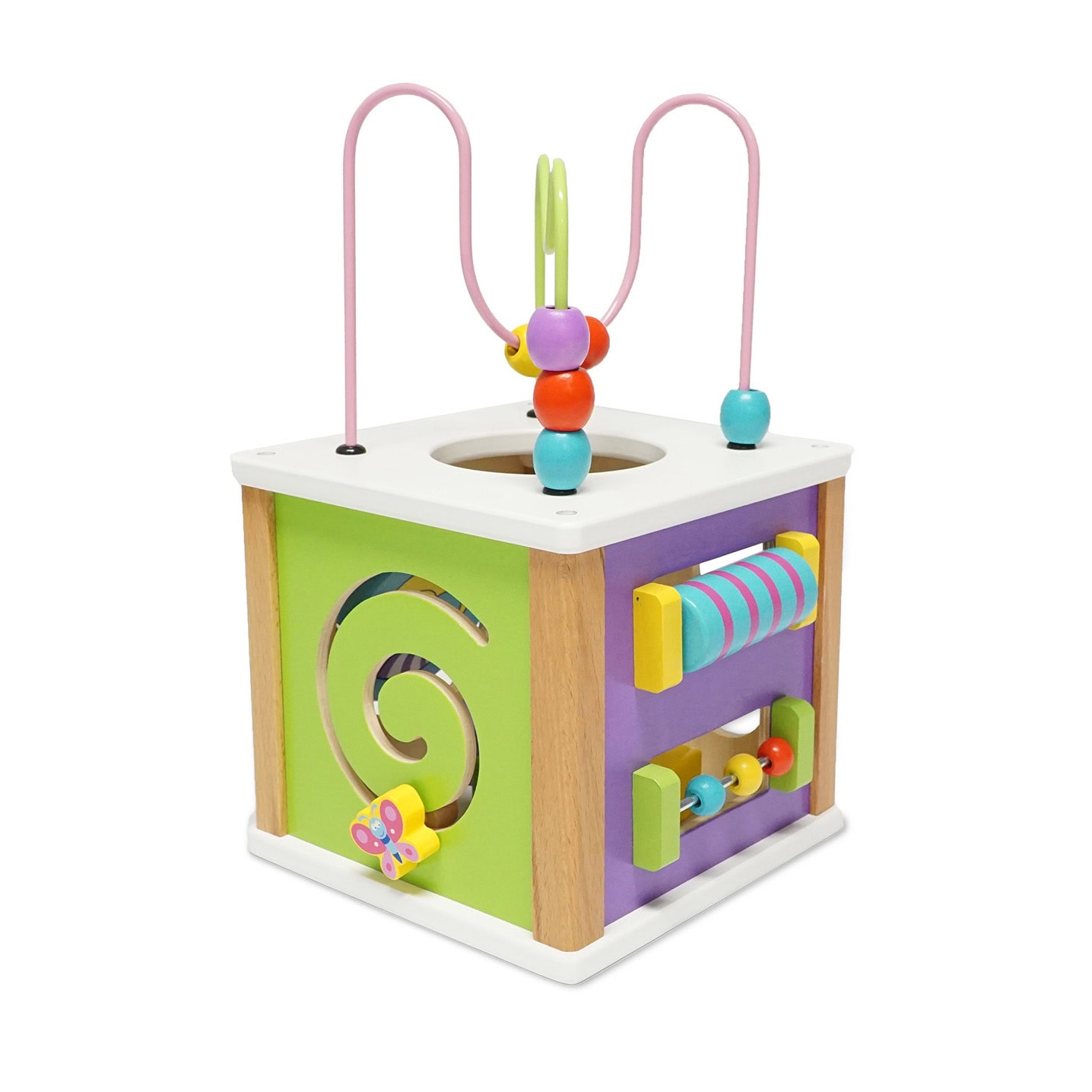 With a small maze, sun and moon, beads and cylinder, puzzle in 4 pieces. In short lots of fun for little money. 20 x 20 x 33.5 cm.