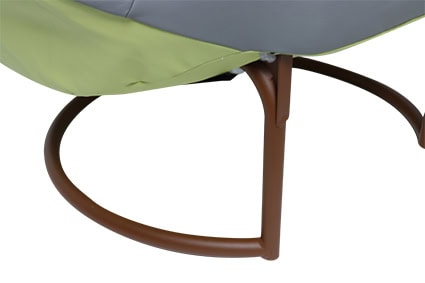 – A sturdy metal frame that moves (slightly) with you and therefore offers suppleness (light rocking).