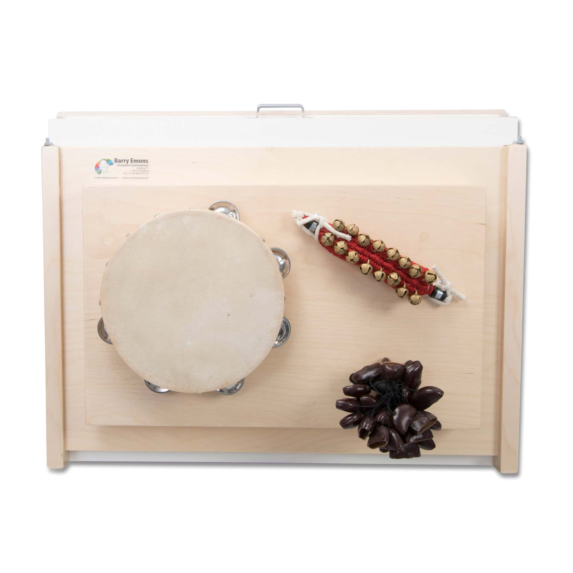 Une assiette avec trois instruments de musique qui émettent des sons rapides lorsqu'on les frappe. Cette assiette musicale se joue avec les mains uniquement. Dimension de la plaque d'acitvité : 39.5 x 57.5 cm Note : livré sans cadre !