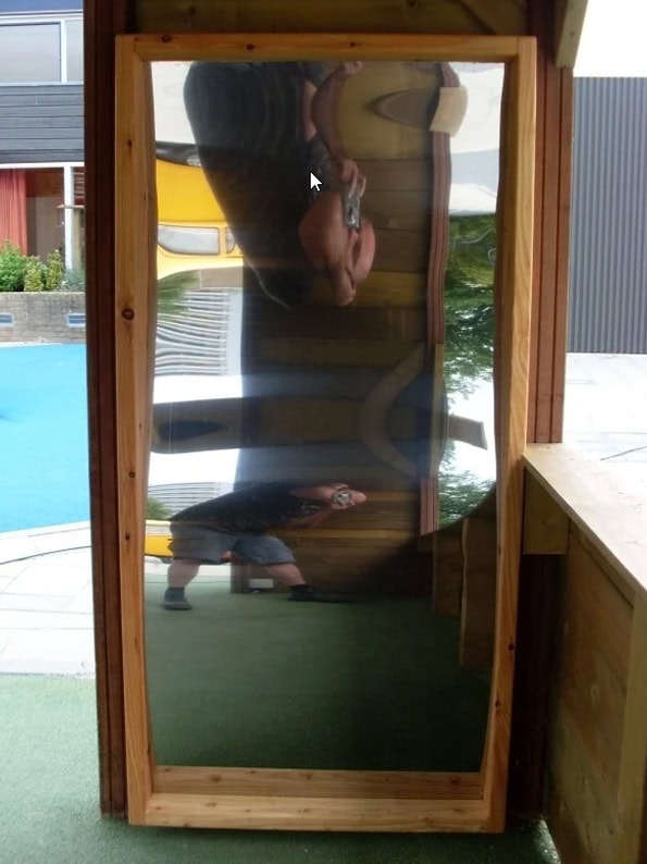 Ce magnifique miroir à sourire est fabriqué en bois de Douglas avec une plaque de miroir en polycarbonate résistant aux chocs. Les dimensions sont de 160x80x20 cm. Le prix ne comprend pas les frais de livraison et d’installation. Pour avoir un aperçu du montant total, demandez un devis sans engagement !