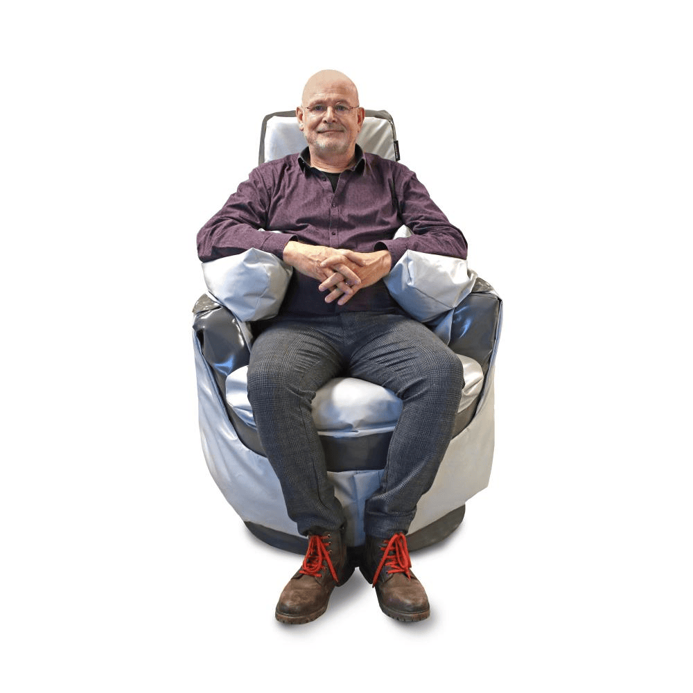 Cette chaise Dynamic souple aux caractéristiques d’un pouf a été conçue en collaboration avec Cello (une institution pour personnes souffrant de handicaps mentaux). Cello a apporté des idées sur la position assise et les fonctions de la chaise du point de vue de l’ergothérapie et du traitement de l’information sensorielle (SI). Avec sa base en mousse ferme et sa couche supérieure remplie de billes de styropor, la chaise PrimaSit Dynamic offre le confort et la fermeté d’une chaise, mais aussi le soutien individuel d’un pouf. La coque du dossier et de l’assise est également dotée d’un rembourrage lâche, qui s’adapte parfaitement et qui est également interchangeable. En outre, le fauteuil offre la possibilité de fixer des éléments de lestage et de rembourrage moyennant un supplément de prix, ce qui le rend très polyvalent. Ces éléments d’aggravation sont disponibles en différents poids et sont positionnés de manière à exercer une pression sur les grosses articulations (épaules, hanches et genoux).