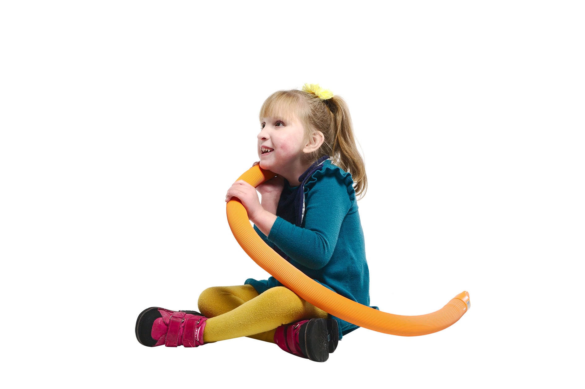 Les piles (2x piles C, non incluses) doivent être placées aux deux extrémités. Le tuyau vibrant est disponible en orange ou en vert (selon disponibilité).
