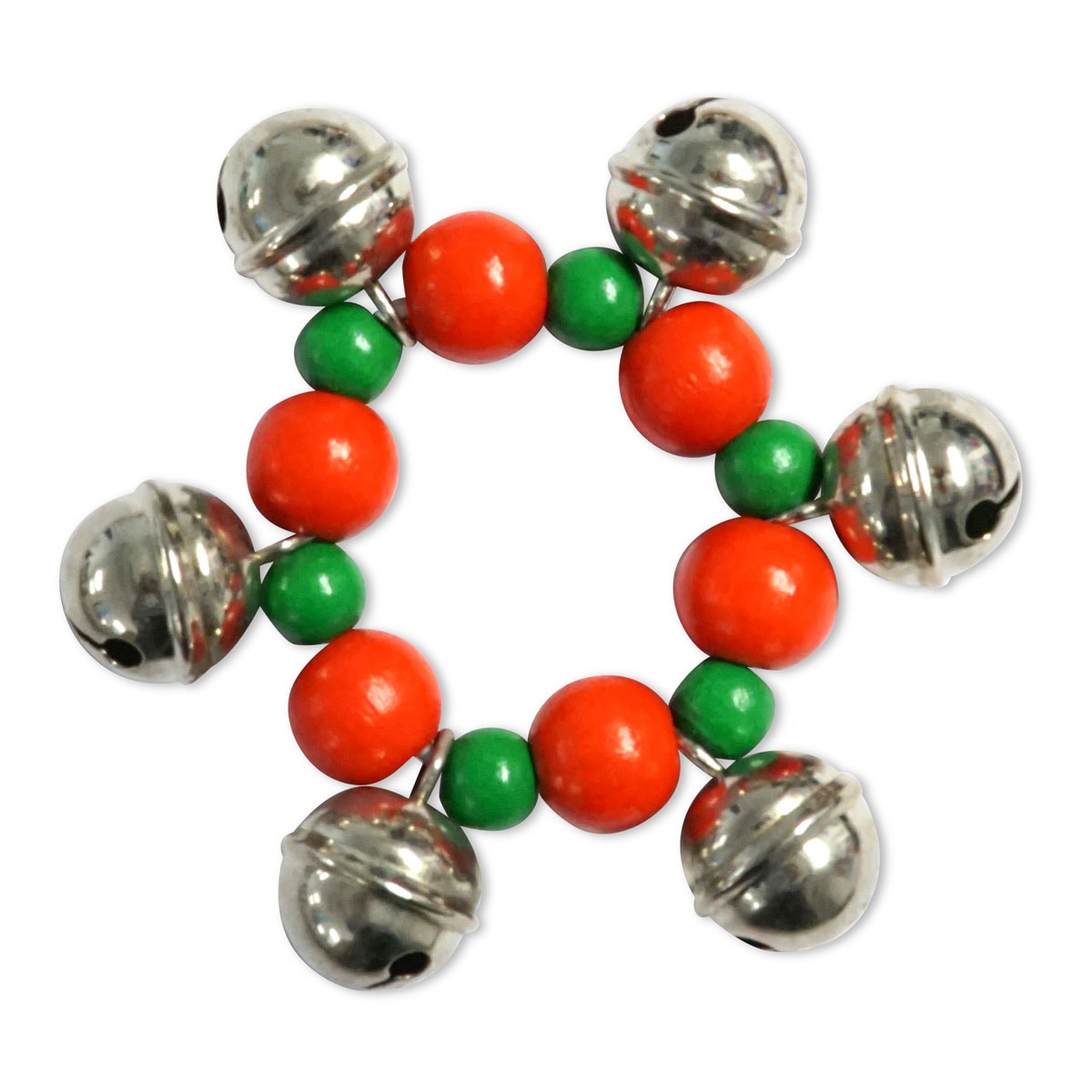 Bellenarmband van hout in kleur met 6 belletjes (9x2cm)