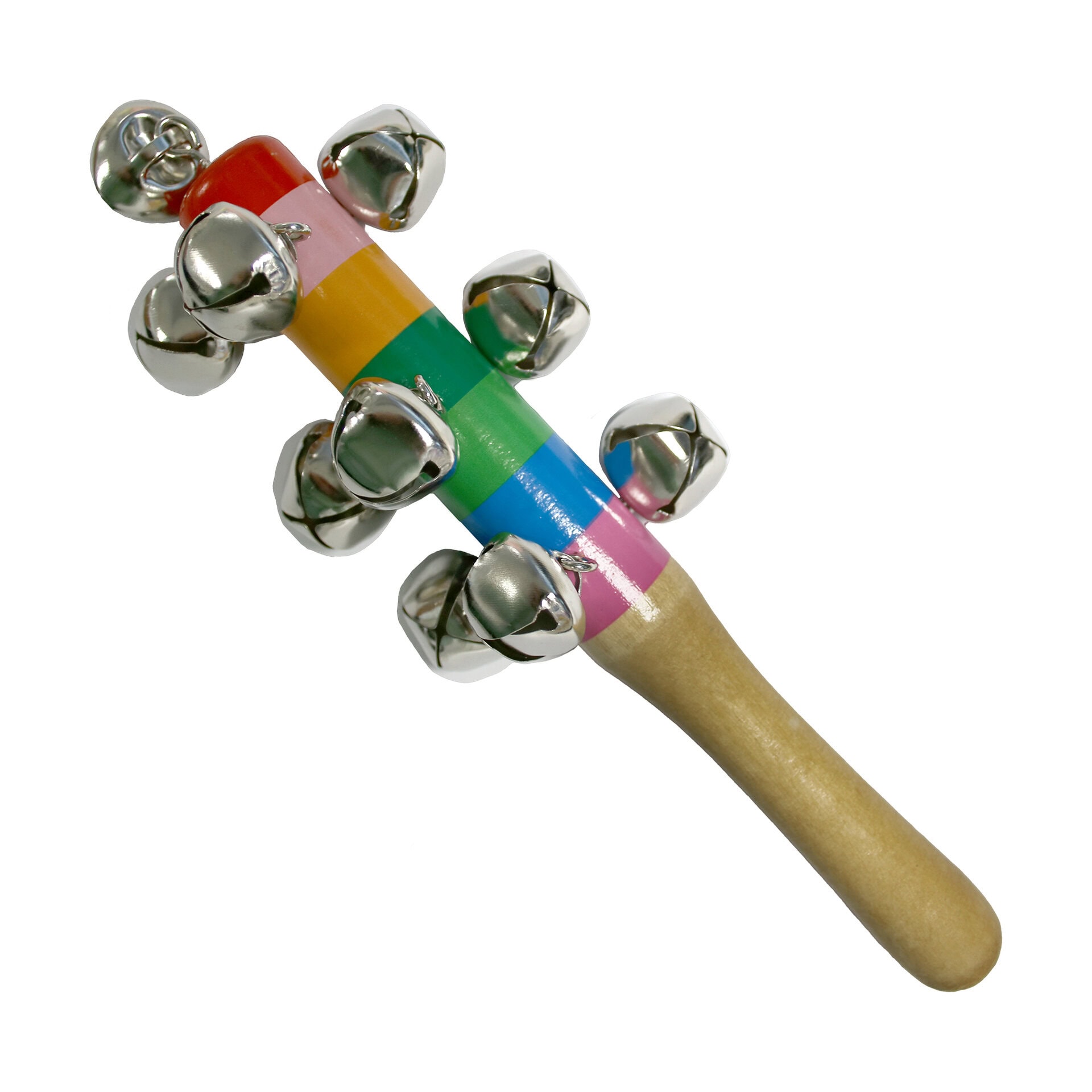 Kleurrijk bellenstokje (18 cm) met 10 belletjes.