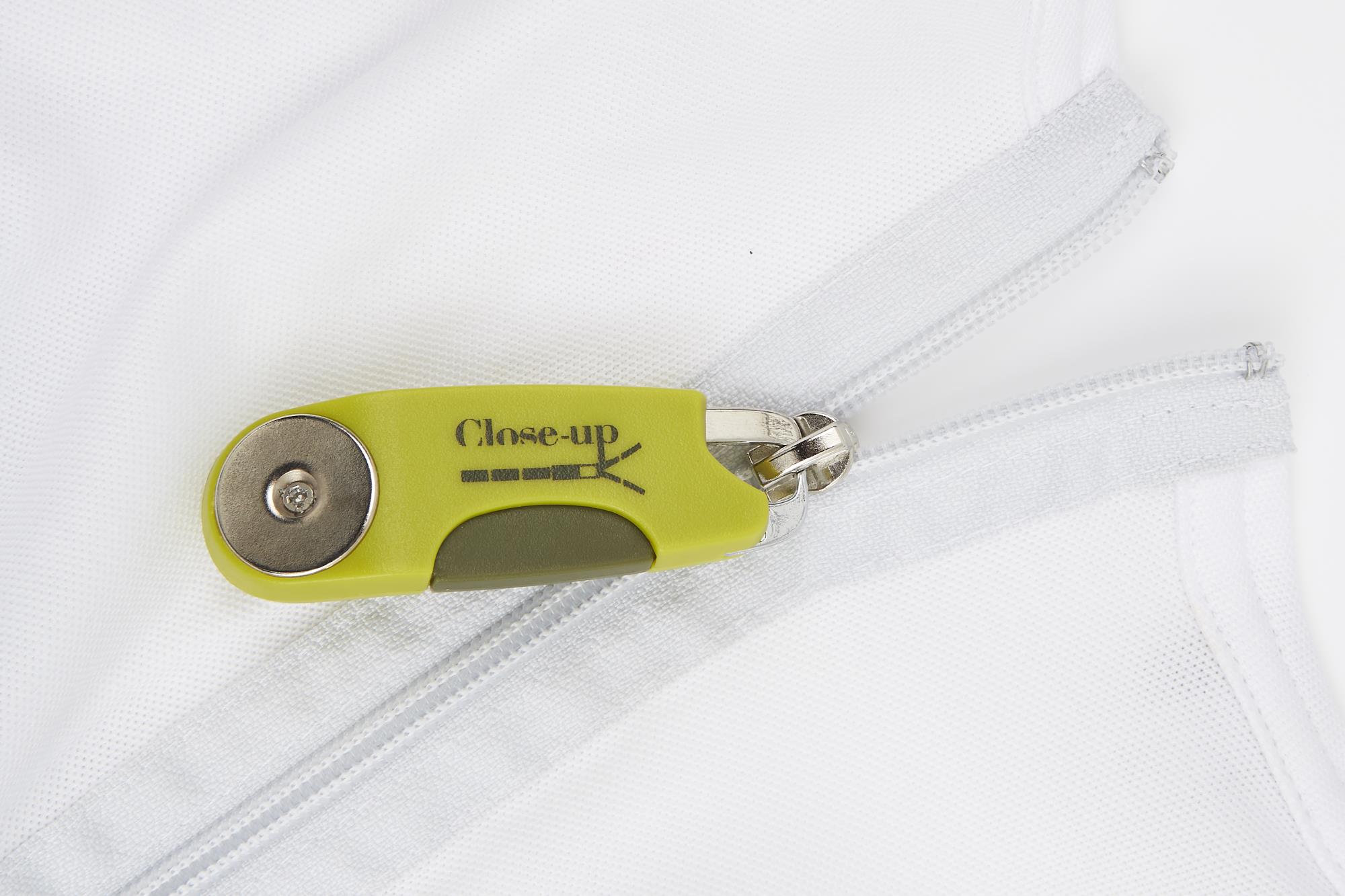 – Geeft mogelijkheden om de sluiting gebruiksvriendelijk in de kledij te plaatsen.