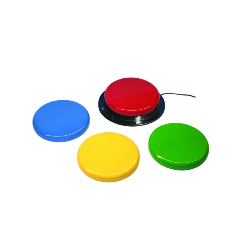 Een druk op het kunststof kussen is voldoende om de schakelaar te bedienen. Wordt geleverd met 4 gekleurde dekseltjes. Exclusief batterijen.