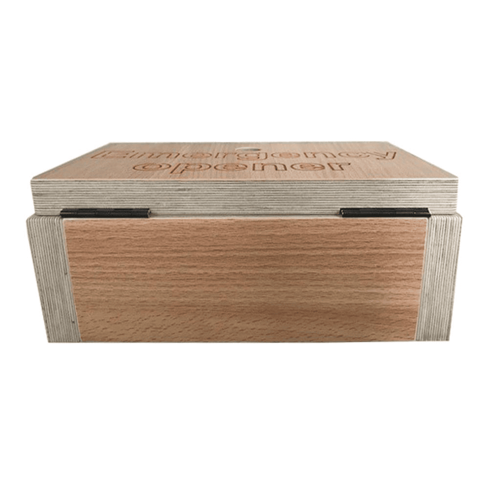 Berg je emergency opener veilig op in dit kastje, vervaardigd uit berken met beuken melamine en uitgerust met een dopsleutelsluiting. Let op: de emergency opener (art. BE05067) wordt niet meegeleverd. Het kastje heeft een afmeting van 25 x 10 x 15 cm en weegt 1,5 kg.