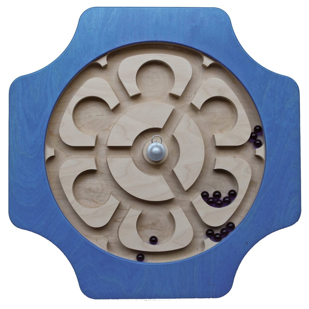 De kogeltjes zoeken hun eigen weg door het doolhof, met telkens een andere weg naar de andere zijde. Wordt geleverd inclusief bevestigingsmateriaal.