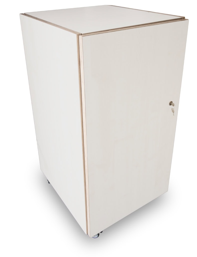 We hebben twee kastjes ontwikkeld voor een bescheiden prijs. De vormgeving is iets funcitoneler. We hebben een grote van 53x 58 x 102 cm (b x d x h) en een kleine variant van 52 x 44 x 42 cm. Nice Price muziekkastjes worden gemaakt van berkenhout met witte melamine toplaag. Dus krasvast en vochtbestendig. De grote variant heeft bovendien 4 wielen van 5 cm.