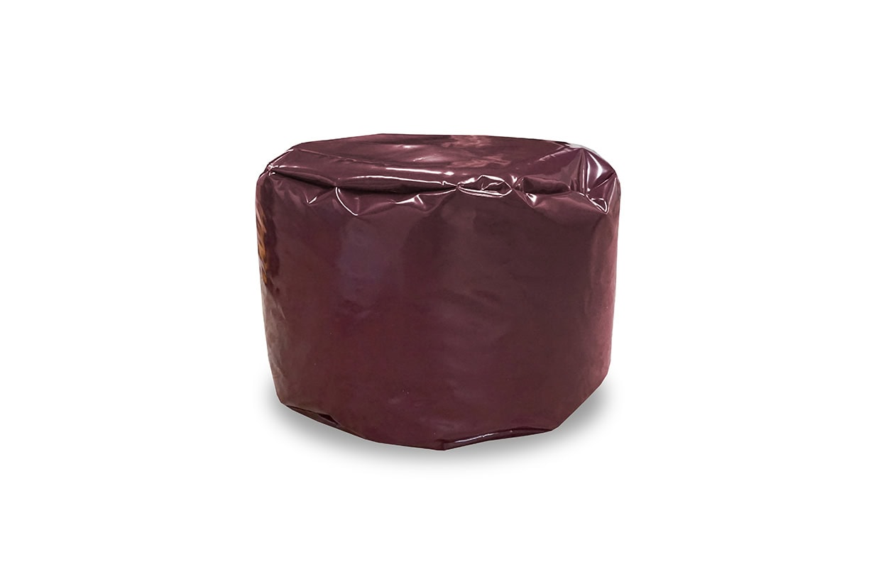 Deze poef is uitgevoerd in Bisonyl en leverbaar in diverse kleuren.