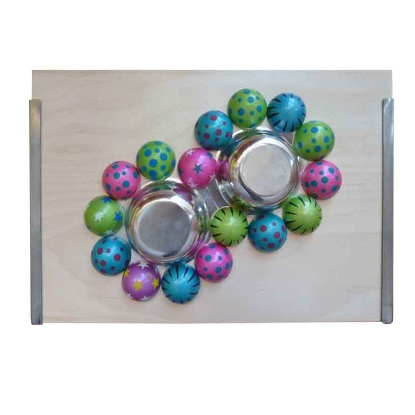 Tastplaat met metalen en rubberen bolvormen voor buitengebruik.