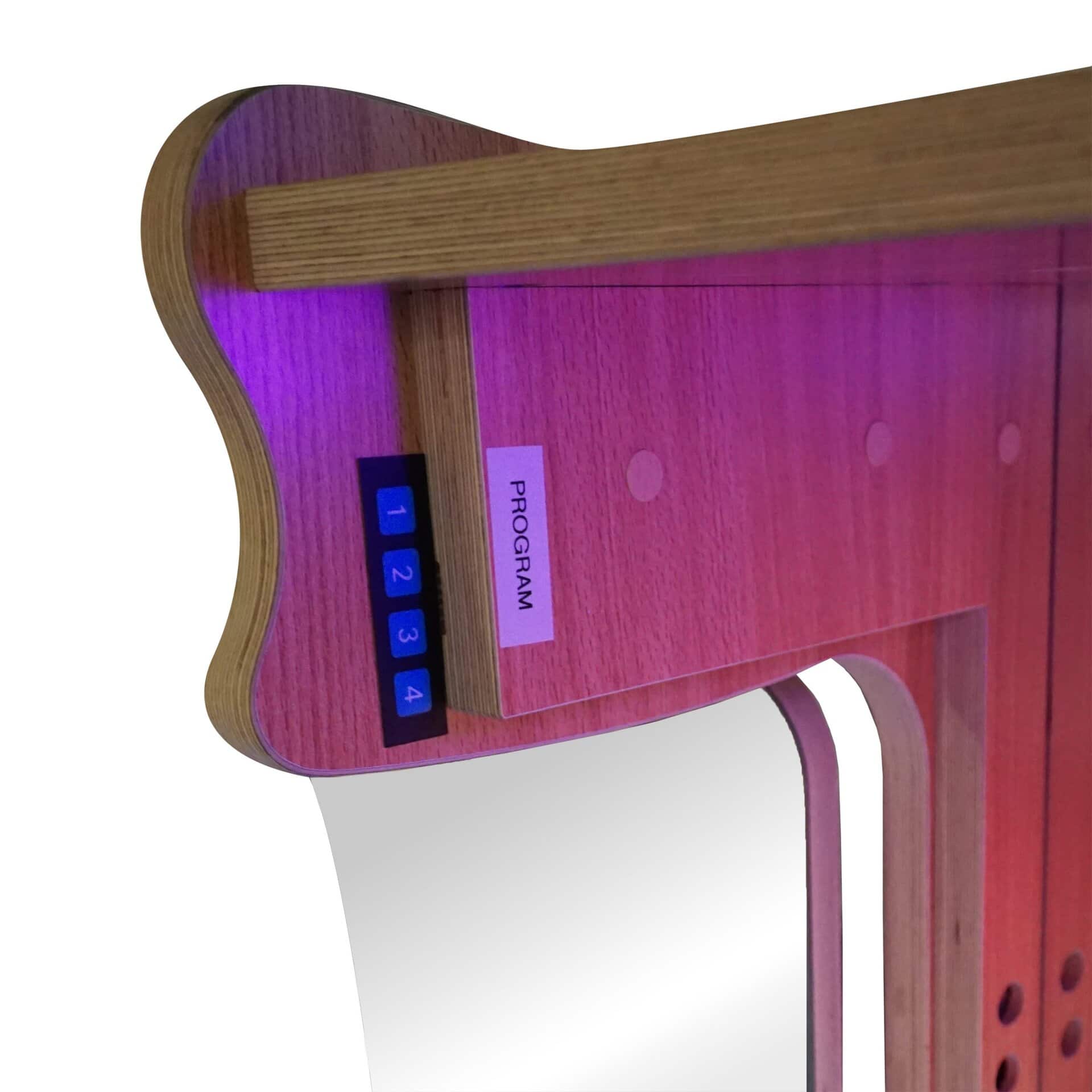 In sommige ruimtes mogen uit veiligheidsoverwegingen geen bubbelunits met water worden gebruikt. Speciaal daarvoor heeft Barry Emons de Snoezelkar Eline ontworpen. Deze kar beschikt over een LED kleurenbuis, die met één druk op de knop van kleur en lichtpatroon verandert. Kies uit één van de vier bewegende kleurprogramma’s. Deze programma’s zijn te bedienen met 4 drukknoppen op de snoezelkar aan de linkerkant van de ledbuis boven de spiegel.