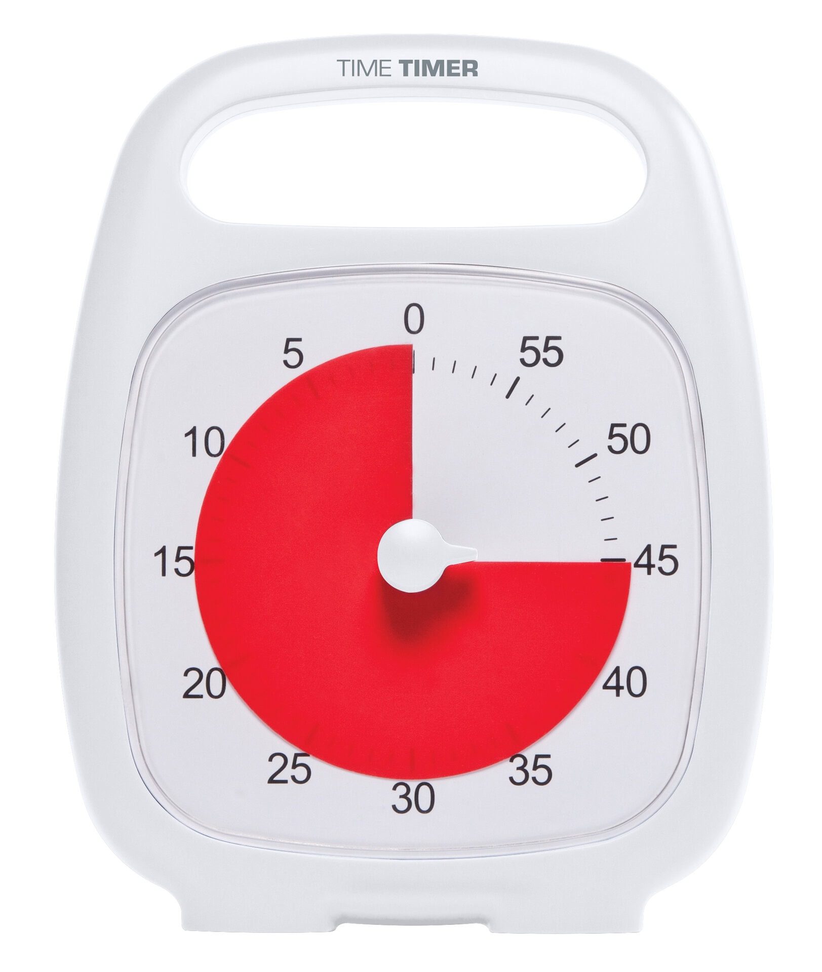 De Time Timer PLUS is ontworpen voor eenvoudige bediening en geschikt voor alle leeftijden. Het geheel nieuwe ontwerp is het resultaat van 20 jaar ervaring en innovatie! Deze timer heeft verschillende eigenschappen, waaronder een beschermde rode schijf, draagbaarheid, instelbaarheid via een knop aan de voorzijde, optioneel geluid, instelbaar geluidsvolume, geruisloze werking (geen getik), grote cijfers en een afmeting van 14×18 cm.