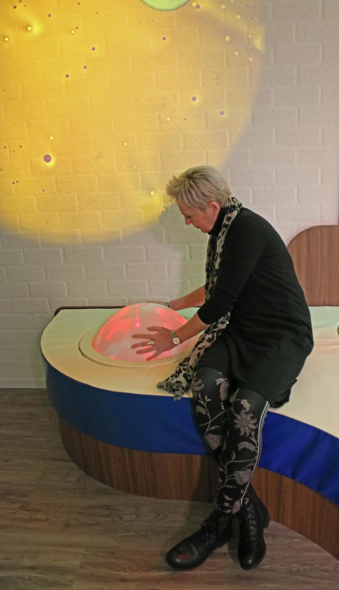 Ingebouwd in een podium is de toverbol veilig aan te raken en kan men intens genieten van de effecten van deze bol. Ideaal voor snoezelruimtes, maar ook fantastisch te gebruiken binnen elke woonruimte of slaapkamer. De toverbol heeft een diameter van maar liefst 50 cm en werkt op 220V. Alles werkt fluisterstil.