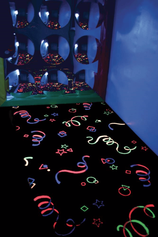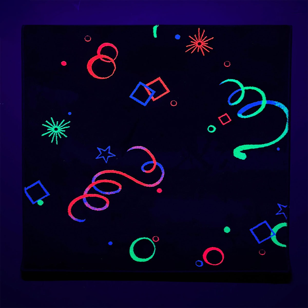 Een prachtig fijn geweven tapijt van gekleurde, fluorescerende draden. Ideaal voor een speciale snoezelruimte en daarbij extra interessant voor mensen met visuele beperking. Het tapijt is zacht aan de handen en voeten en slijtvast. Afmeting 1 x 1 meter